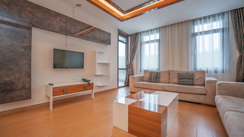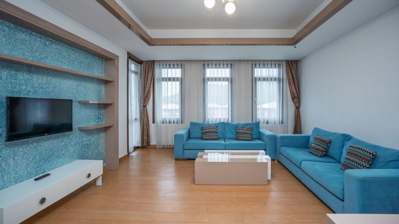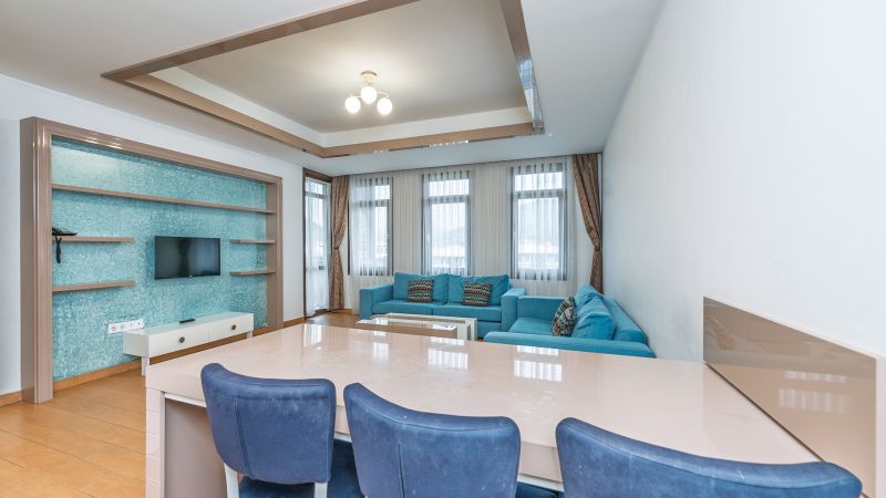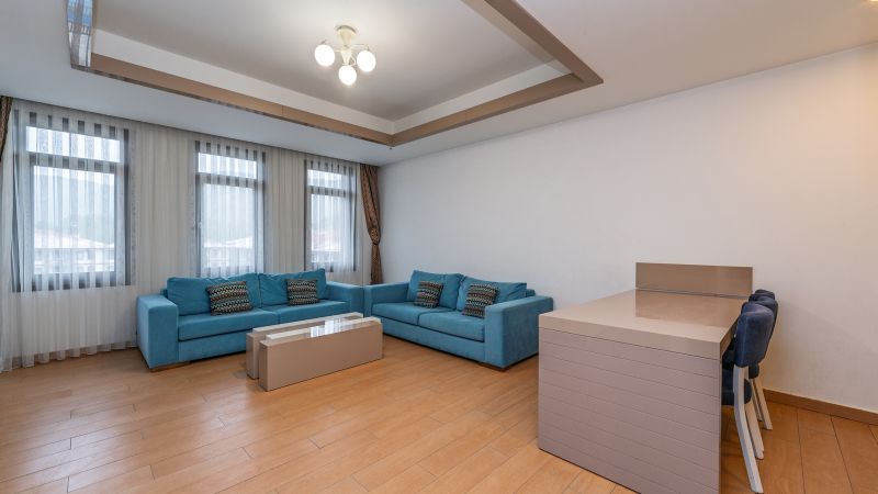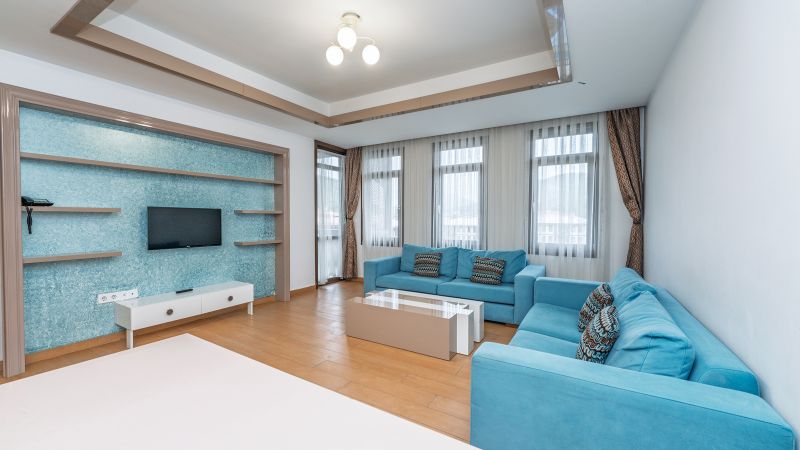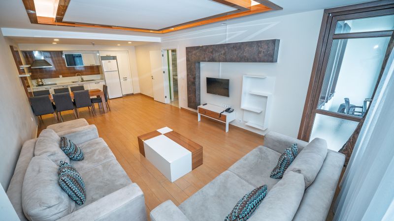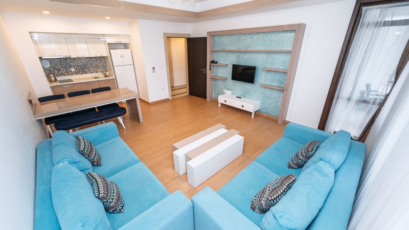 * Tüm odalarımızda; yemek masası, sehpa, özel kumaşlı oturma grupları, mobilya aksesuarları, seramik parkeler, ses ve ısı izalasyonu vardır.