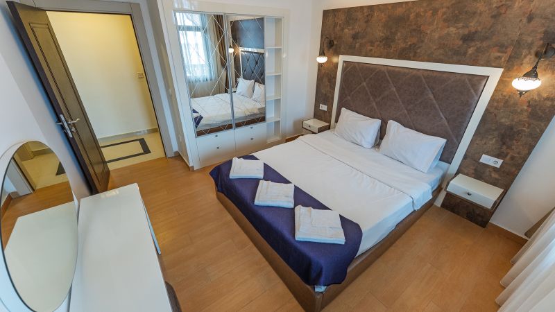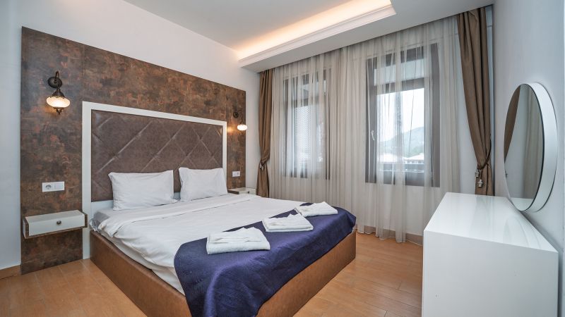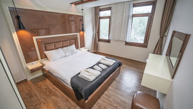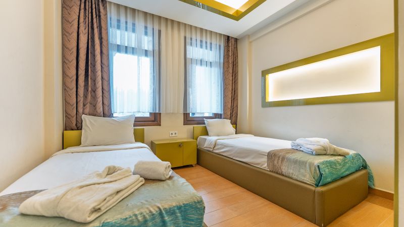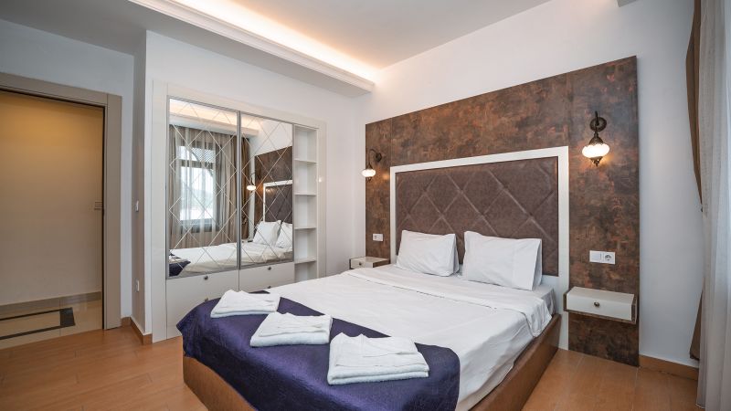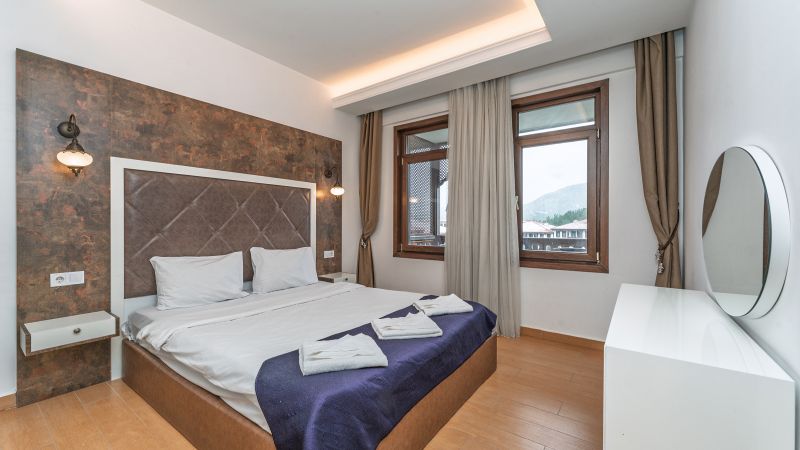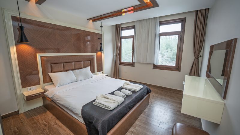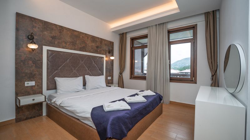 - Oda kapasitesi maksimum 5 yetişkin 2 çocuk (1 çift kişilik yatak, ayrı odada 2 adet tek kişilik yatak, 2 adet çek-yat mevcuttur.)
