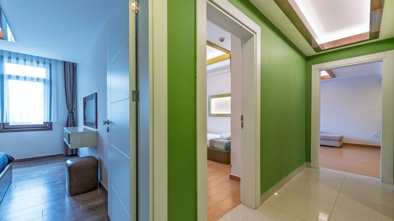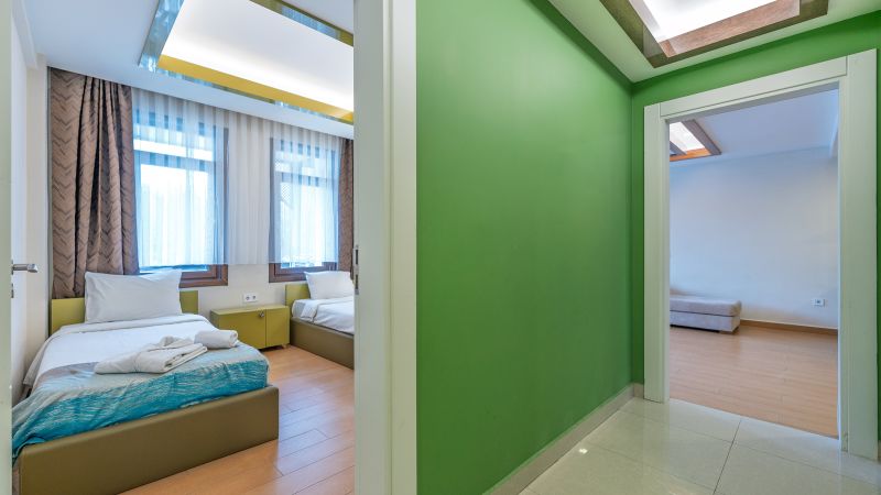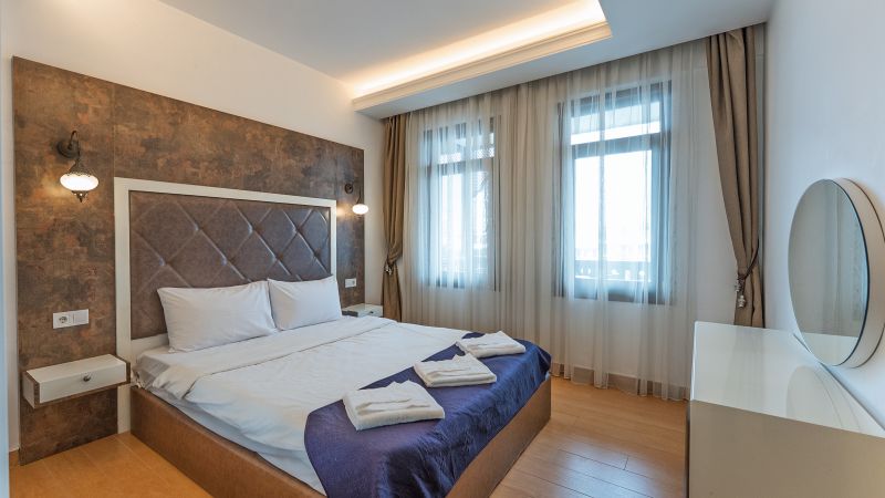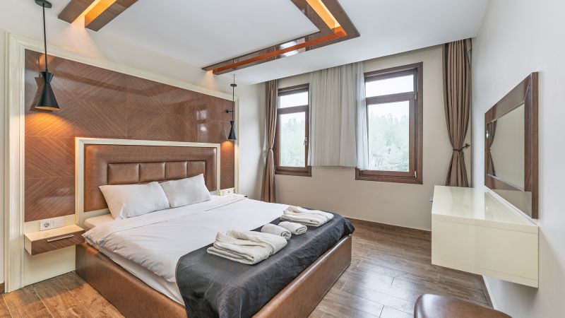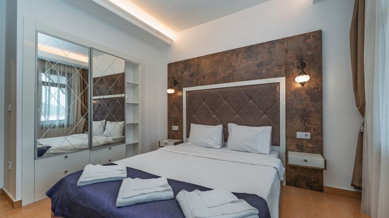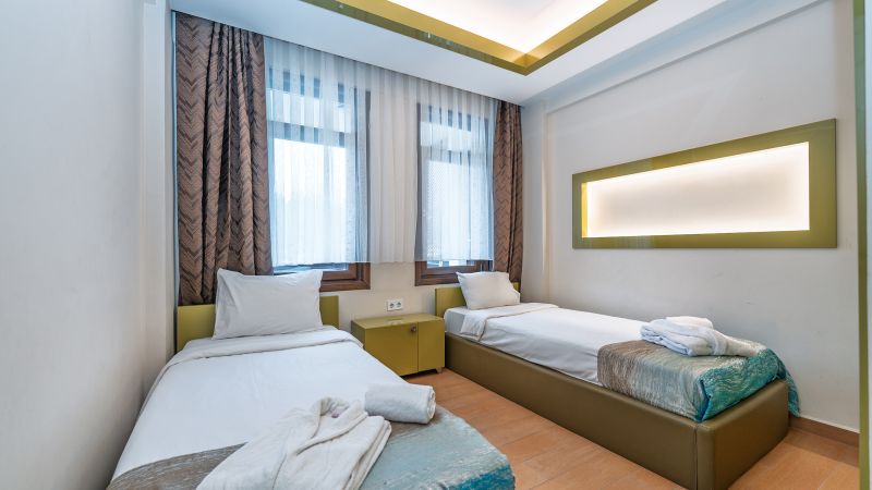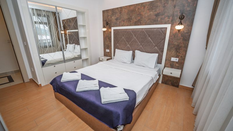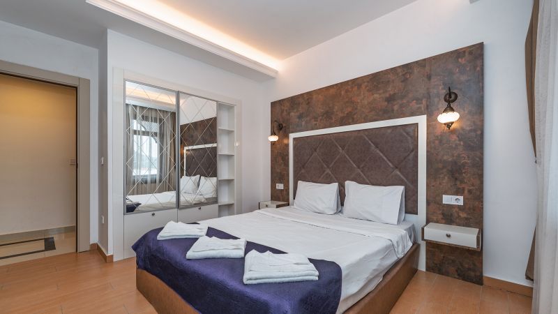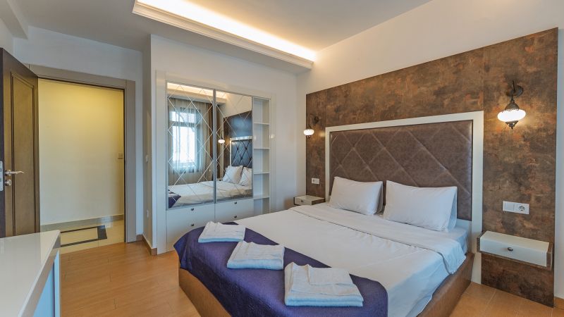 - Oda kapasitesi maksimum 5 yetişkin 2 çocuk (1 çift kişilik yatak, ayrı odada 2 adet tek kişilik yatak, 2 adet çek-yat mevcuttur.)