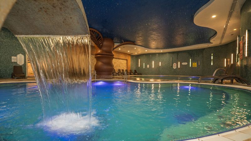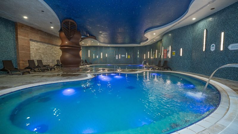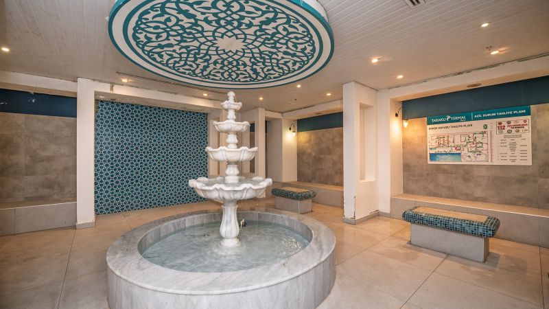 Sağlık kaynağı termal havuzlarımız, kadın ve erkek misafirlerimiz için ayrı olarak tasarlanmış 2’şer havuzdan oluşmaktadır. Havuzlarımız, 36-38°C ve 38-40°C sıcaklık seçenekleriyle hizmet vermektedir. Her iki havuzumuzda da sıcak su şelalesi bulunmakta olup, misafirlerimize sağlık ve rahatlama sunmaktadır.